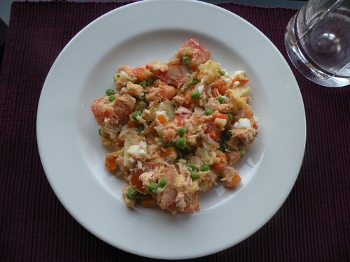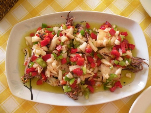 Fizemos uma salada de chocos, estava muito boa.