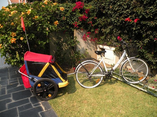 Qualquer dia sou eu a pedalar e a Matilde atrás no carrinho.