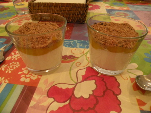 O prato foi arroz com pimentos verde e vermelho e mexilhão e para sobremesa iogurte natural com manga e bolacha com bocados de chocolate ralada por cima.