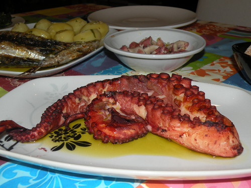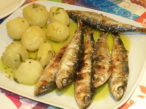 Como eu não gosto muito de polvo o Márcio trouxe-me sardinhas porque eu gosto bastante, embora ainda não estejam no ponto estão um pouco secas falta aquela gordura boa das sardinhas, e deu para matar saudades.
