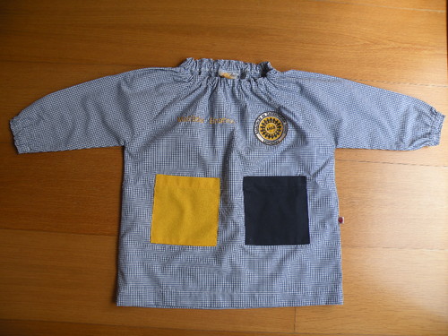Duas batas, para a Matilde usar quando começarem a mexer com as tintas, um chapéu, 2 conjuntos de lençois e uma bolsinha para colocar o equipamento.