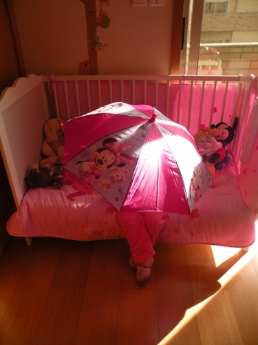 Natália olha o meu guarda chuva.
