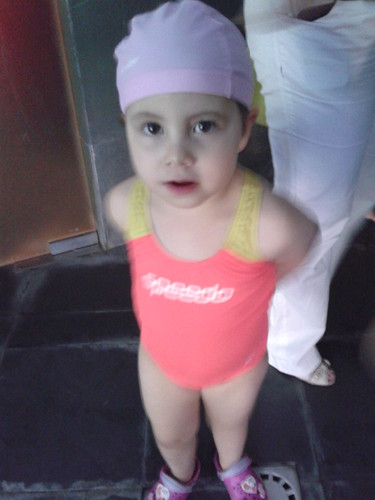 Admito que a primeira vez não foi fácil, quando viu a piscina ficou com medo, estava a contar que fosse mais pequena e que eu pudesse ir para a água com ela.