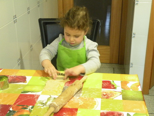 A Matilde ajudou a amassar a massa, mas também comeu alguma, e a colocar nos saquinhos.