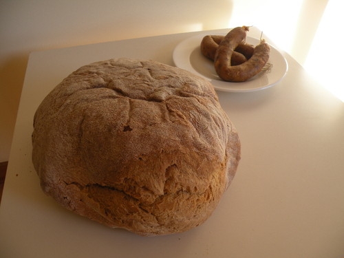 O meu pai foi à caça e trouxe este pão, que adoro, e estas alheiras.